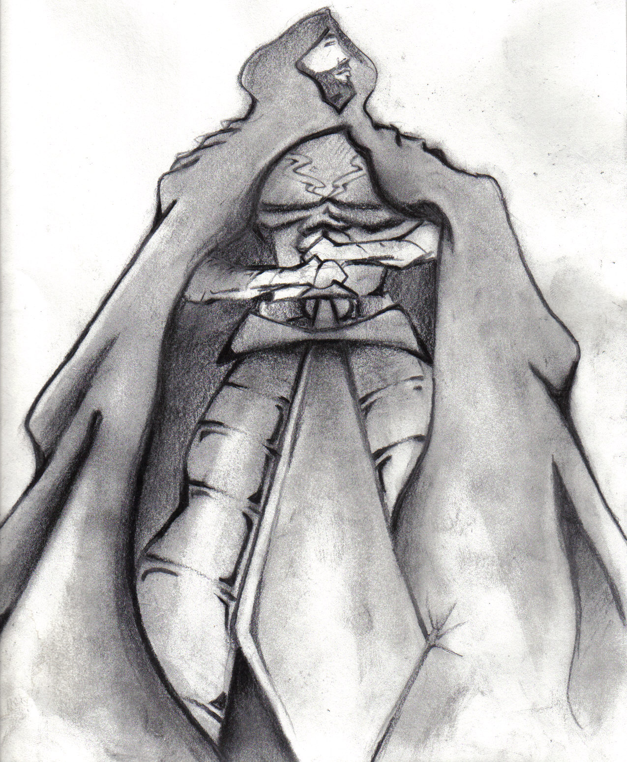 The statues showed warriors from the olden clan of the Sea Walkers of Atlas which were remembered as protectors of the outer lands of 4th Lebos. The General turned and faced the left statue and murmured in the same cryptic language that he had spoken while in deep thought; “Once more the low hum was present, this time the words sounded like low screams of dying women. In translation; “Glory to the god of the skulls.” Suddenly the wall on the other side of the statue silently unlocked and revealed a hidden room. The room was large enough for two people and had three black mirrors on each of the surrounding walls. The room was lit only by two red torches that displayed yellow and blue flames. In the middle of the room was another mirror that was three times larger than the other mirrors that inhabited the walls. Next to the middle mirror was an open book that held many depraved writings that glorified the slaughter of innocents and the damnation of humans. As the General strolled in the malevolent room the yellow and blue flame transformed to a cobalt color and all the mirrors displayed a black swirl. He was not frightened but knelt down on one knee in front of the large mirror. The General moved his face towards the blackness of the mirror and spoke in a riotous and bitter intonation. In translation “killer among men is desire for us, the return of us, the birth of us. nothing else is wanted nor needed, no praise of people, no self loathing or forsaken wealth, only us. we need the blood, the blood of young ones, young men and pure women. we need the faith of you to strengthen us…..” As quickly as the voice spoke, the mirrors returned to normal and the flames reverted back to yellow and blue. The same voices continue to whisper the insane language for a time, nothing ceased its talking but enhance a wicked awakening of the general. He then raised his head slightly but fell to the floor, screaming for help as if he was being attack by hundreds of small daggers in his chest. Strangely he did hold his chest but smiled as if he loved it, loved it all. General Furndar now knew his purpose as he placed his face within his hands for relief to his throbbing head. He stood up but kept this head down as the voices began to demise inside of him.