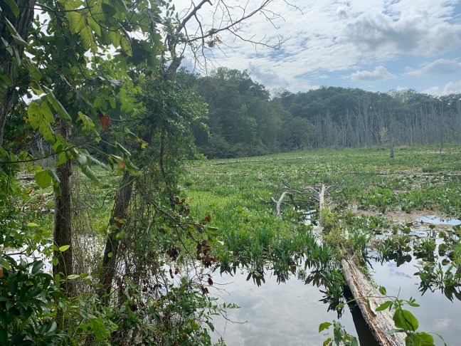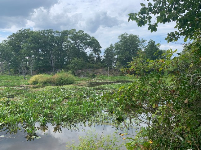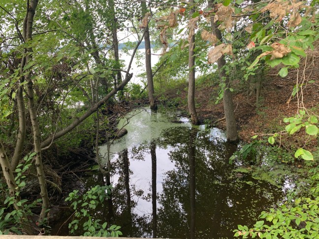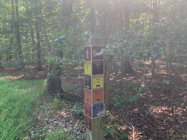 Now, I began on the Wilson Spring Trail, which was a decent walk, to be honest. The trail itself was typical, enclosed trees, greeny that that cover both sides of the surface ground—pretty standard. What made me give a “side-eye” was towards the break to another trail, Bay River, it was overgrown. My first assumption was to walk on a semblance of a path, one that lessened with greeny. Sadly, that walkway led downhill, near a creek entirely off-trail. That did not sit well, so I went off trail for a few feet and arrived on the Bay River path. That was a good thing because this path was more clear than its first counterpart. My journey continued unabated.