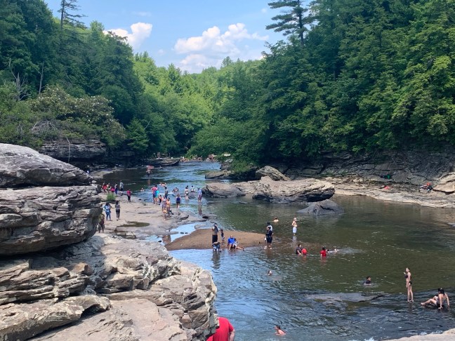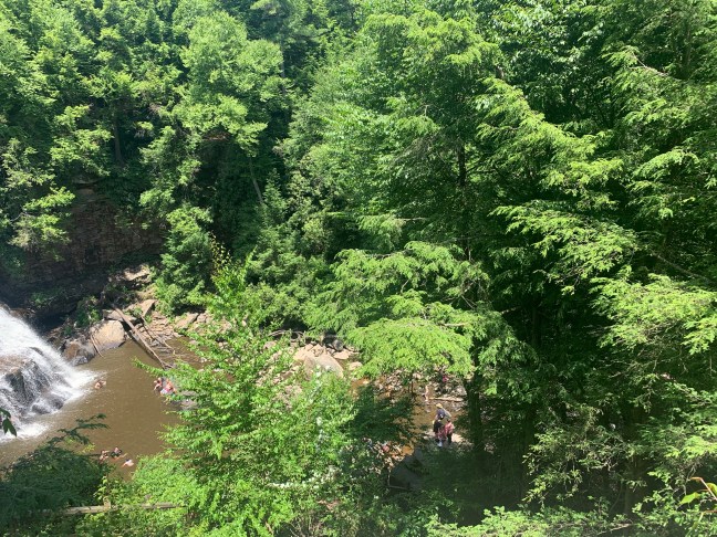 Swallow Falls State Park is one of the most beautiful parks I ever have seen in person. Crazy enough, the trails were not anything to be excited about from when I first enter the wooded area. There was one main trail, and small walkways (with wooden stairs) that led to the several waterfalls in the area, three total. You can hover around the top while looking down at the waterbed. You could also choose to go near the water and either sit on the rocks or get in it. I did both as the water felt semi-warm as I touch the surface with my left hand. The sun controlled the day, yet with no humidity as it made for a near-perfect excursion to be outside.