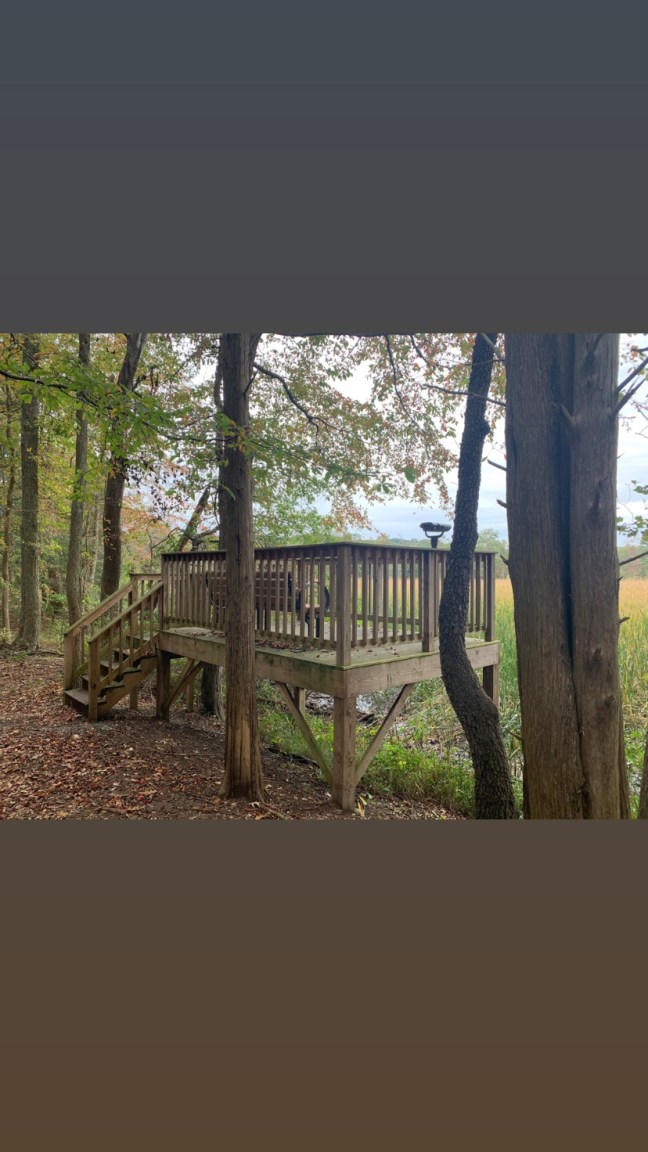 They had at least six bird view stations scattered thought all the trails, and each one had telescopes attached to the wooden floorboard. A few times a year, people would gather and watch the hatching for bald eagles. The eagles could be seen from a distance, but the telescopes helped with that action. Specific trails were closed off when I was there, so the eagles would not be disturbed.