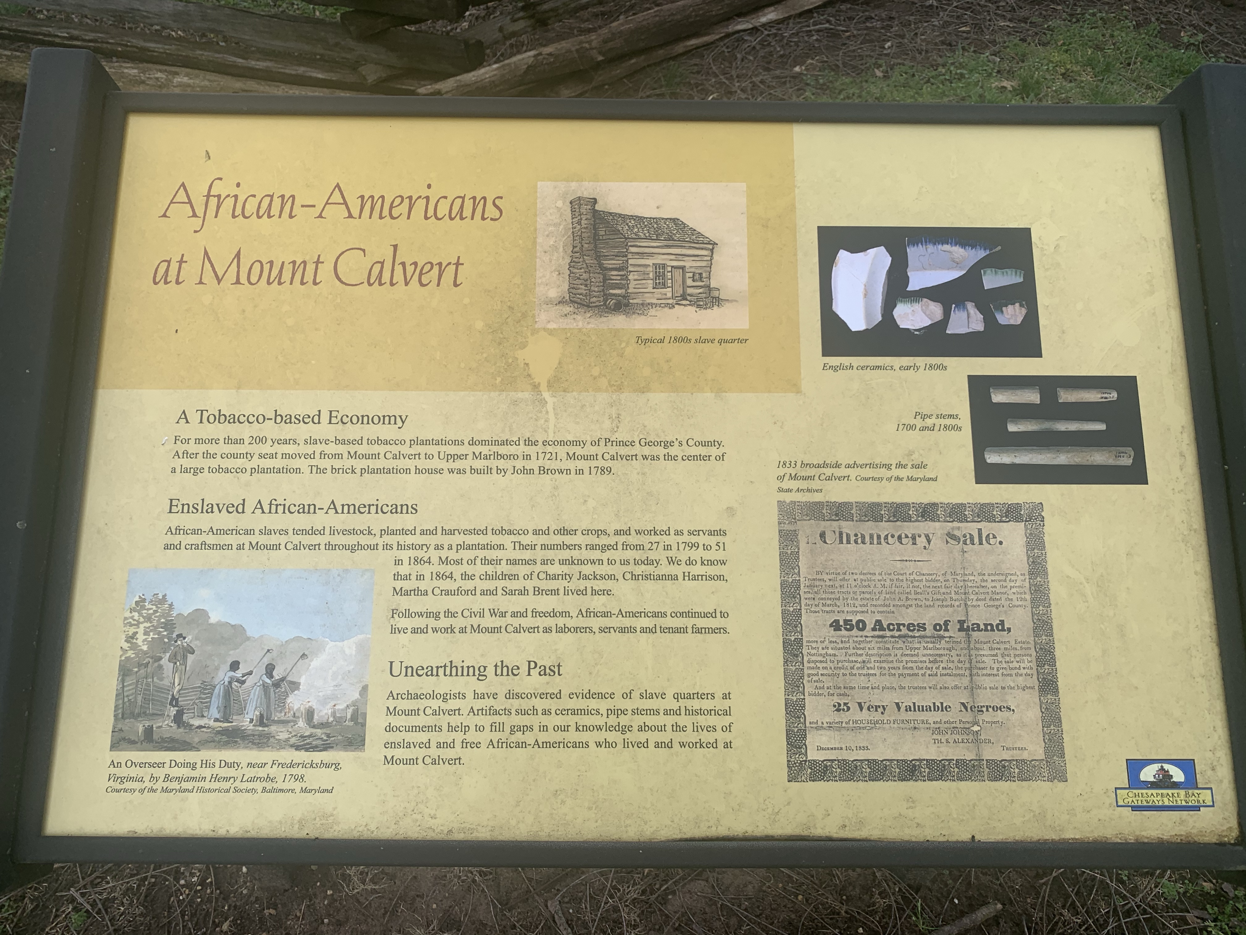 There were also a few historic readers on the grounds. It showed Mount Calvert’s history, the record that I wrote about at the beginning of this blog. The War of 1812, the convergence of three distinct cultures, and even the touch of the brutality of cattle slavery these grounds saw it all.