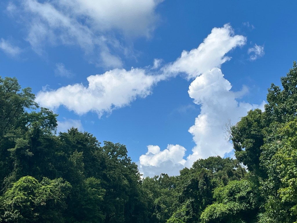 I pulled out my phone and took a few pictures of the blue sky, invaded by cumulus clouds and a mild late summer temperature. It was a good day in my judgment, maybe too warm to warm a long sleeve dress shirt, but it wasn’t uncomfortable for me—well, for a short time at least.