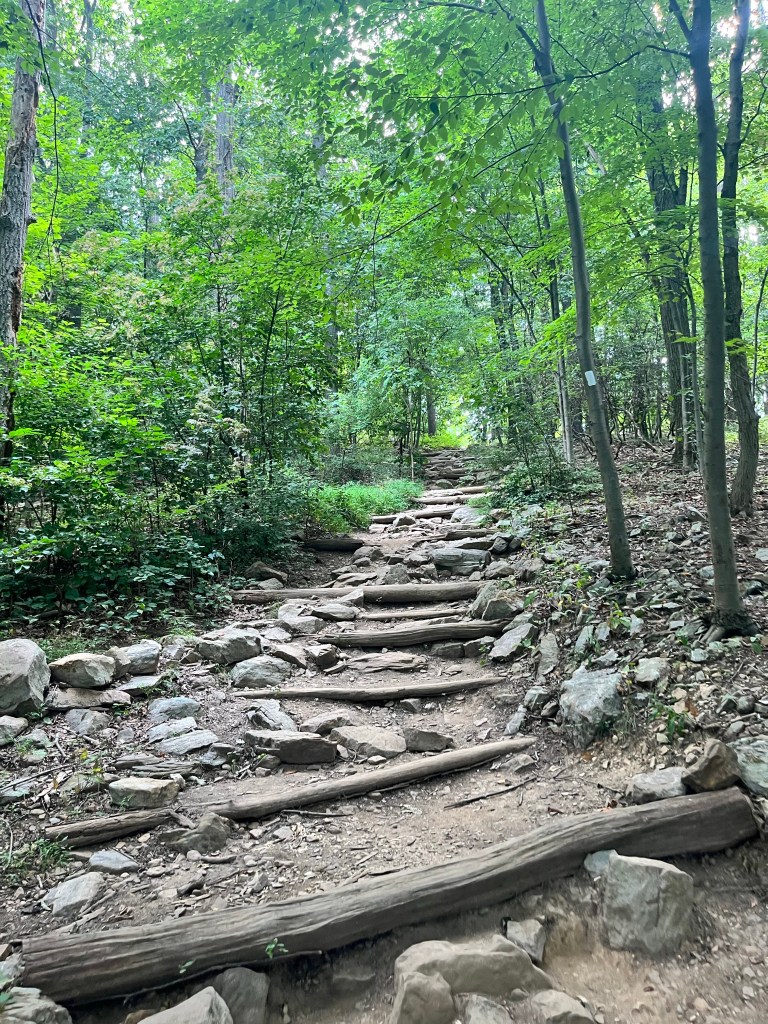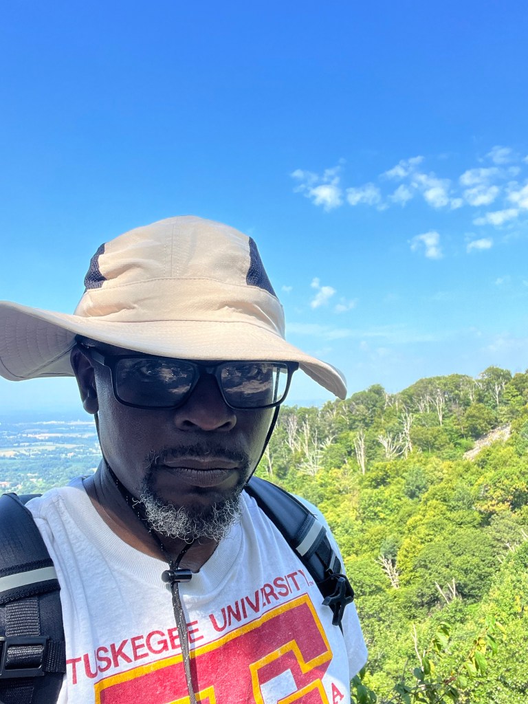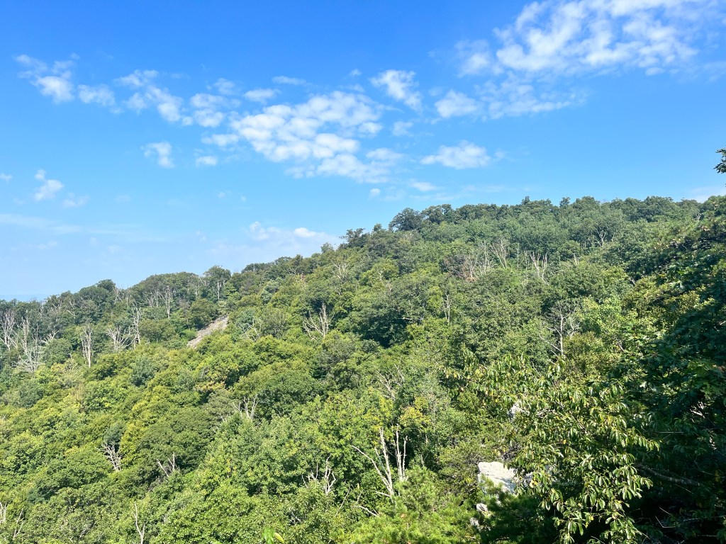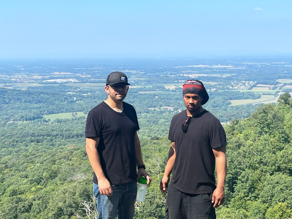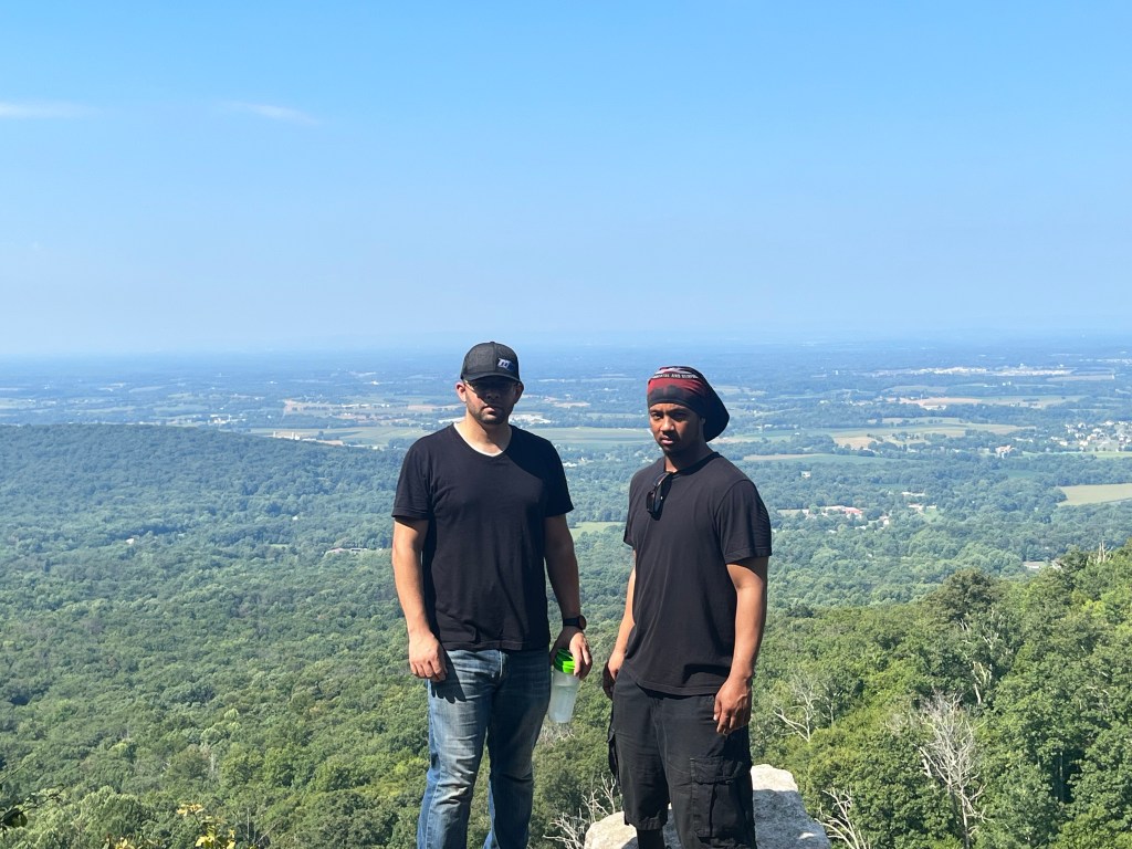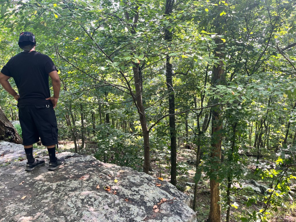 We were joined by another friend, Angel’s motorcyclist peer, named Willie. He lived around the area and was somewhat familiar with the park but never walked inside its boundaries. He was surprised at the length of the trek, as Angel and I were not. I hiked similar trails as this one, but something about it was different. The feel was quieter, if that makes any sense. The scenery was amazingly stunning, and the view across Frederick County made the journey worth it. Many others were on the trail, and we saw a couple repelling near the top. Others, like Angel and myself, jumped across several big rocks while the remaining visitors sat down to settle in for lunch.