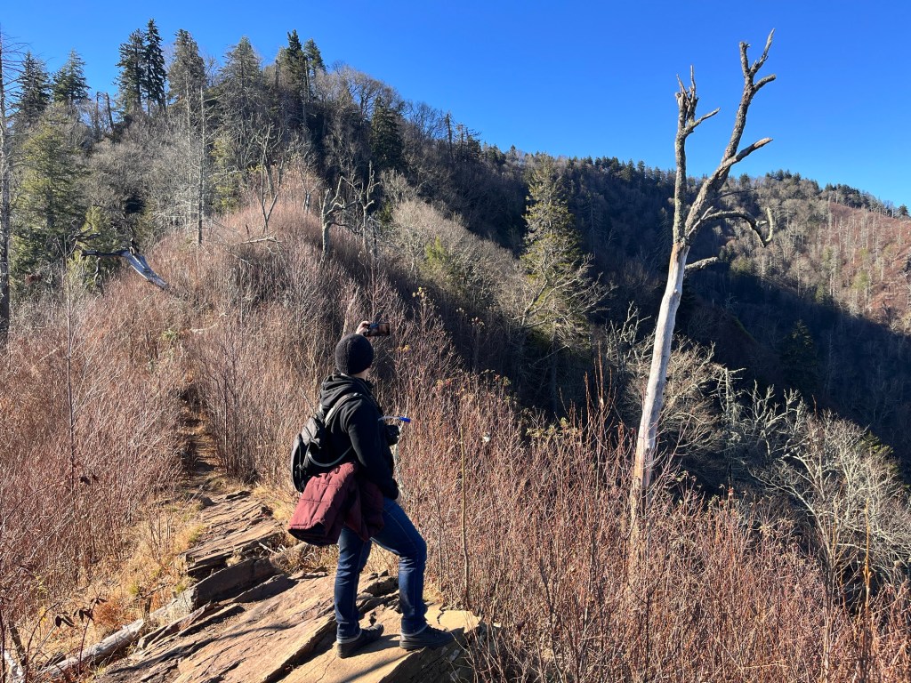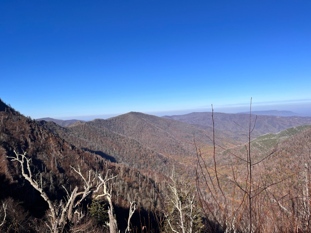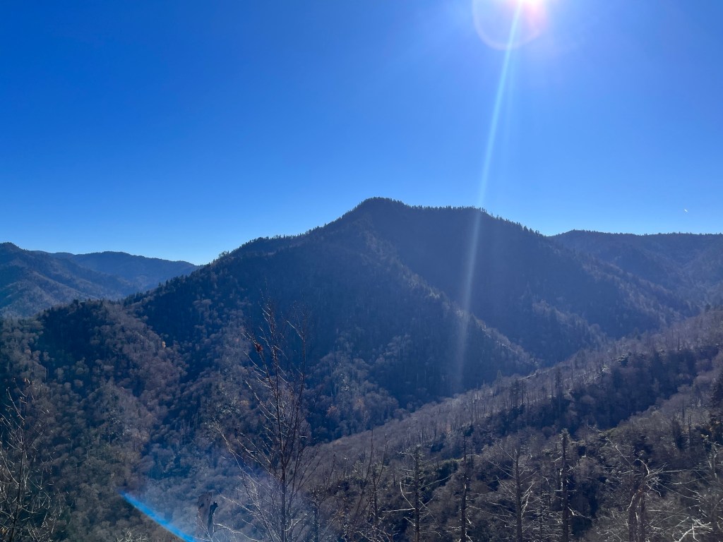 We saw the cerulean-like haze at the mountain tops, which appeared to be blue smoke to the eye. This is one of the main reasons they called it the “Smoky Mountains,” as it constantly looked like smoke was inhabiting the upper layers of the national park. It was a splendid view and somewhat haunting. One wrong climb could have claimed our lives, yet the ability to view such a scenery made the attempt worthy.