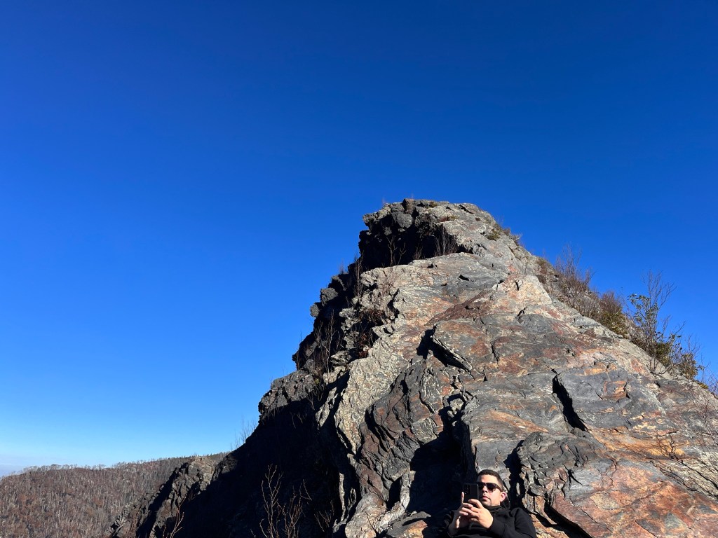 We climbed a peak near the top of one of the highest overlooks in the park. I, however, only made it halfway while Angel’s heart did not fail him. He reached the top and spoke to another hiker from upper New York. I stayed at the midway point and took pictures and videos.